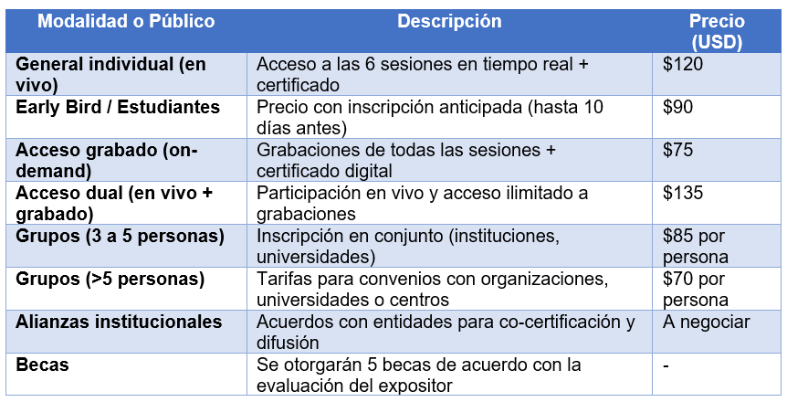 12 horas académicas distribuidas en 6 sesiones de 2 horas cada una
